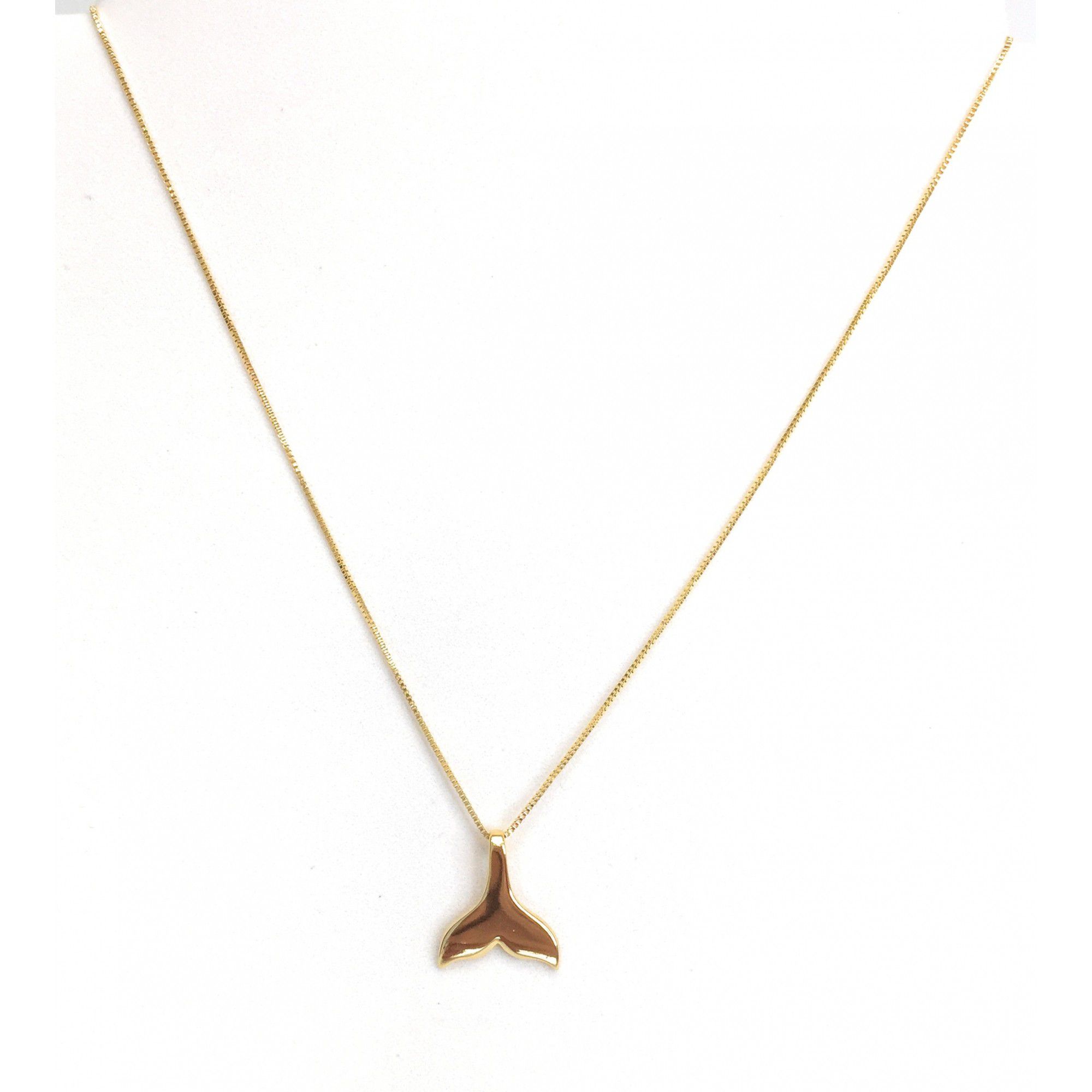 Maravilhoso colar em corrente veneziana com pingente de cauda de baleia, todo banhado a ouro 18k.