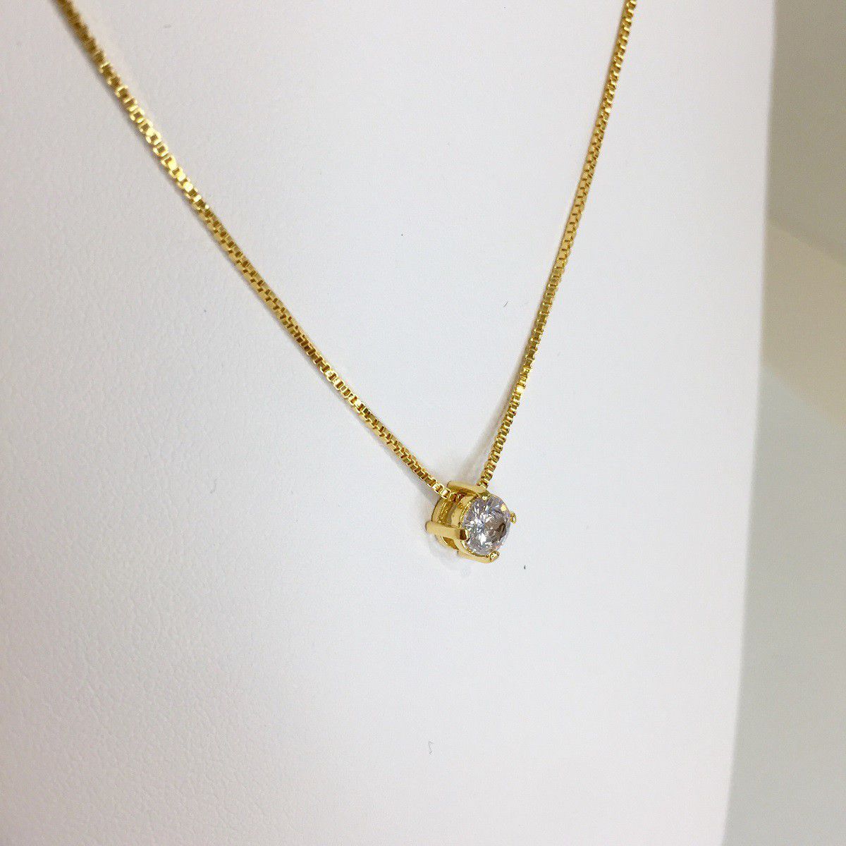 Bela e delicada corrente veneziana com pingente ponto de luz com zircônia cristal (5mm).