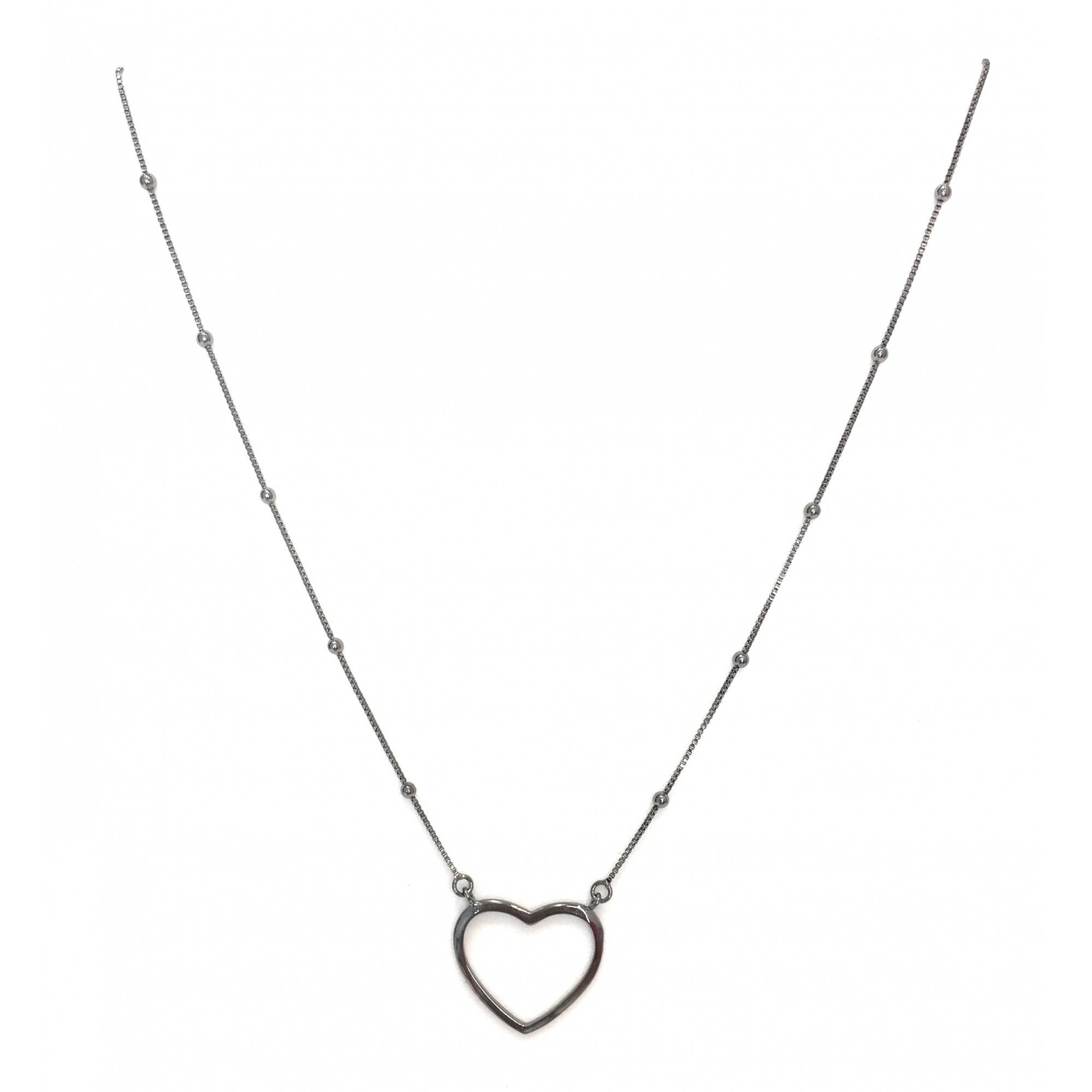 Um colar elegante e cheio de estilo: corrente veneziana de bolinhas com banho de ródio negro e pingente de coração vazado.